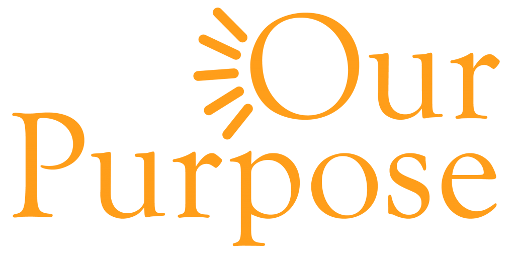 A black background with the words "Our Purpose" in large orange letters, with the letter "O" stylized as a sun with rays.